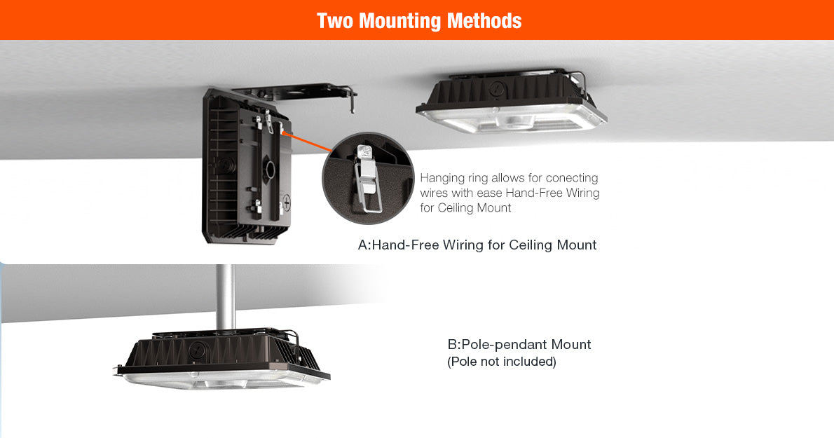 LED Canopy Light series is the premier choice for industrial and commercial lighting in a variety of settings, such as gas station, house, entryways, Other Commercial Lighting Applications, Support Ceiling Mount or Conduit Pipe Mount and more.